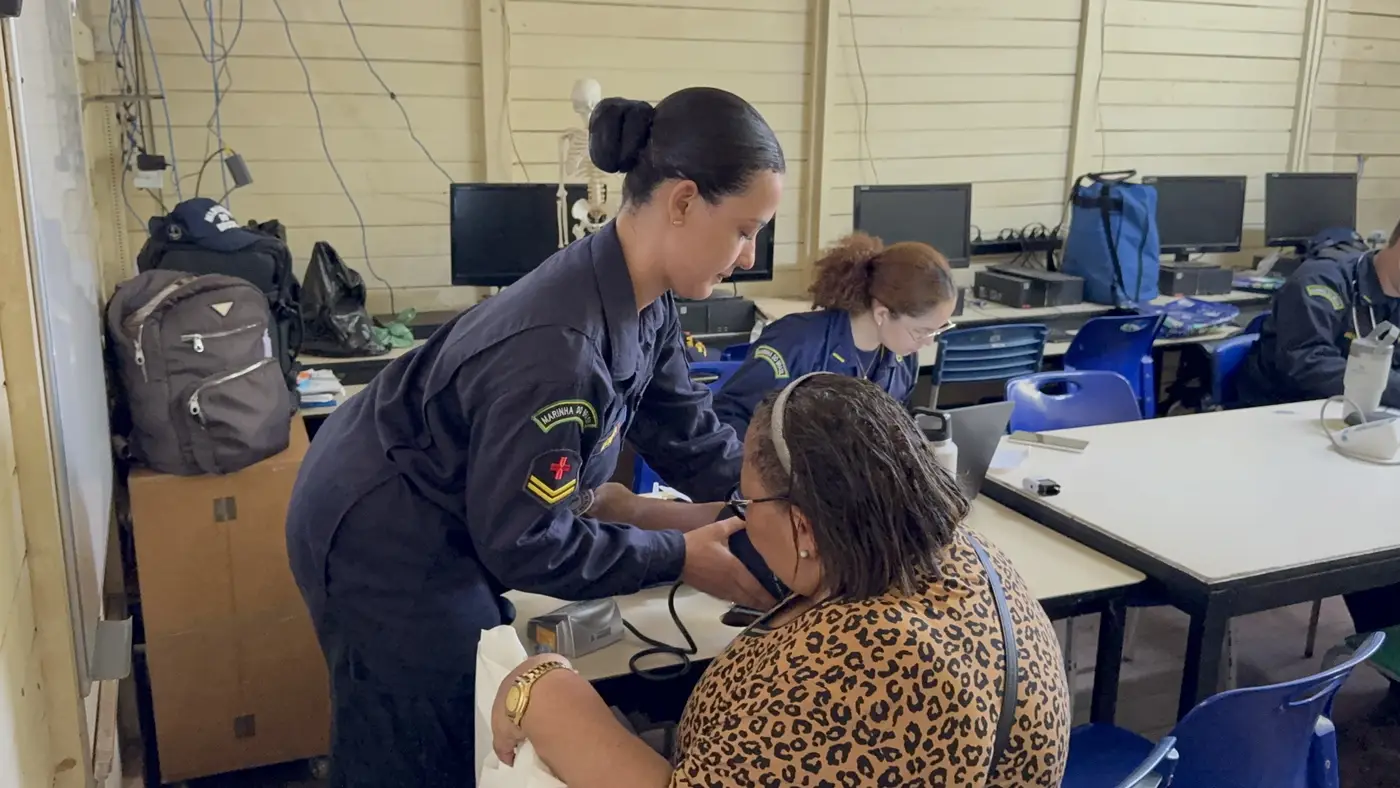 Saúde e Prevenção:As equipes da Sespa e da Marinha do Brasil promoveram atendimentos clínicos, encaminhando para exames e mamografia, ampla campanha de vacinação, fortalecendo a rede de proteção imunológica da ilha, e consulta médica com Clínico Geral.